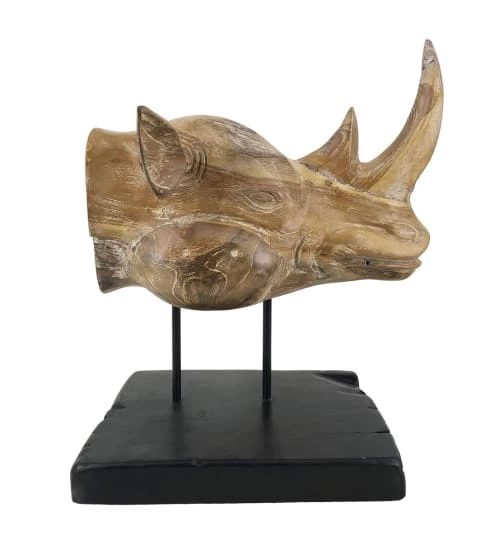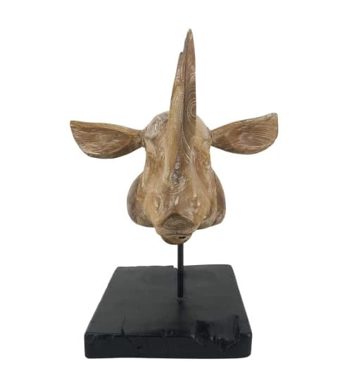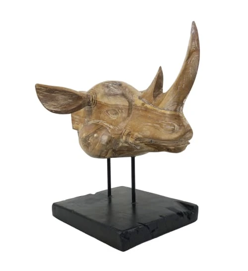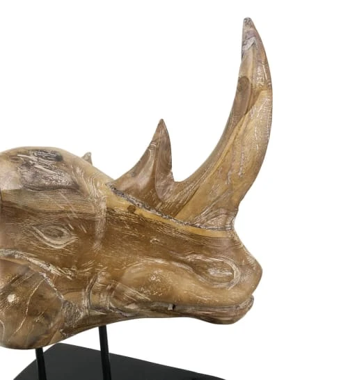 MOYCOR Statuettes Et Figurines Tête De Rhinocéros En Bois Blanchies