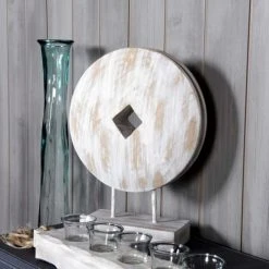 Sensei Maison Statuettes Et Figurines Feuille Décorative En Bois De Manguier Blanc 21x9x50 Cm